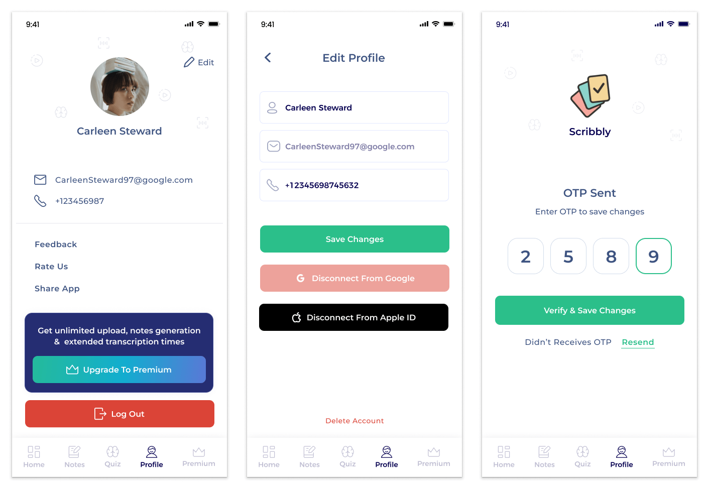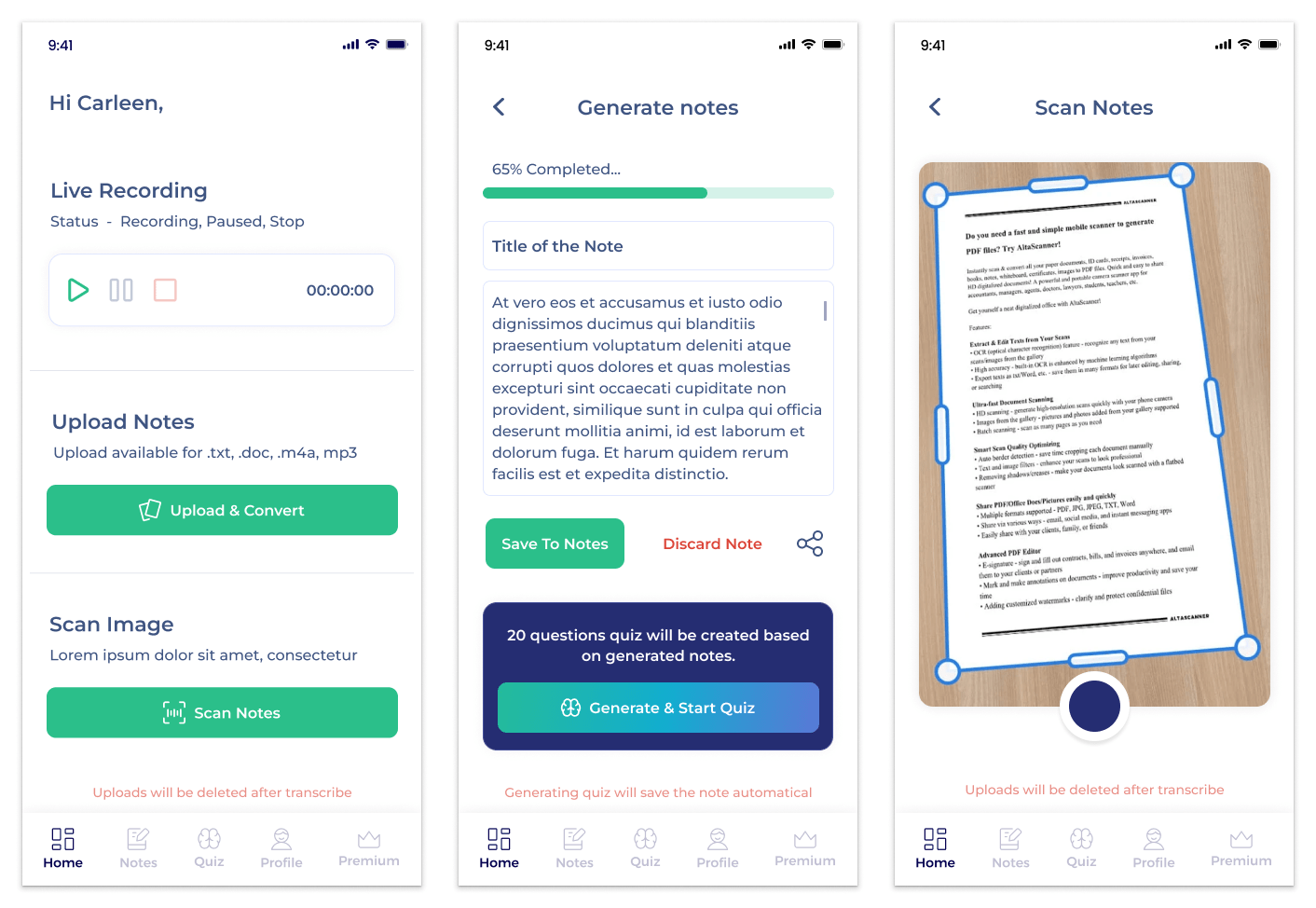 I designed Scribbly as an intelligent note-taking experience where users can create organized notes directly from voice, images, or uploaded documents. The system automatically processes the input into clear summaries, and includes a built-in quiz generator to support faster learning and memory retention.